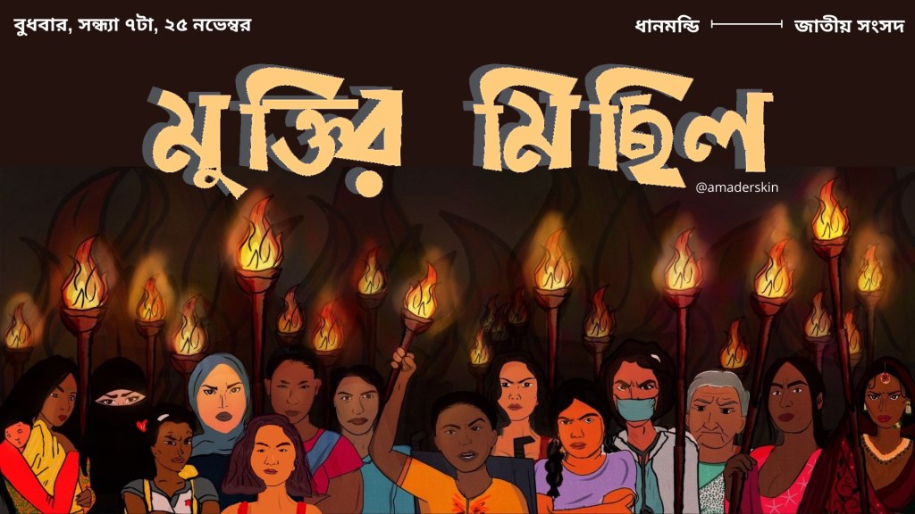 যোগ দিন আমাদের সাথে “মুক্তির মিছিলে” এই ২৫ শে নভেম্বর দলমত নির্বিশেষে আমরা আমাদের এই ক্রোধ প্রকাশ করব. আমরা রাজপথ দখল নিব, তা হোক দিন কিংবা রাত।