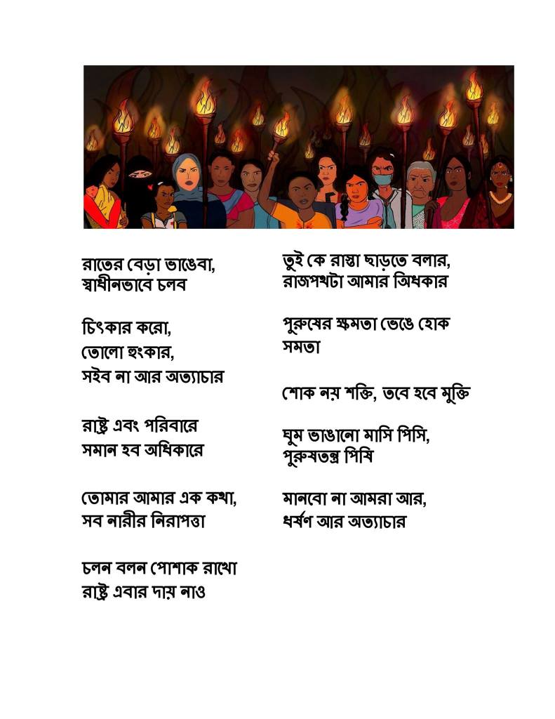 এই ধরণের রক্ষা আমরা চাই না! আমরা ক্ষুব্ধ এবং আমরা চিৎকার করে বলতে চাই আমরা সুরক্ষার নামে বৈষেম্যের শিকার হতে চাই না, স্বাধীনতা থেকে বঞ্চিত হতে চাইনা। যেই সুরক্ষার নামে আমরা বারবার নির্যাতনের শিকার হই সেই সুরক্ষার নামে ধর্ষণের দায় আমাদের উপর দেয়া চলবেনা। আমরা আমাদের অধিকারের সম্পূর্ন এবং নিঃশর্ত প্রয়োগ চাই ও আইন সংস্কার করে নারী-পুরুষের সম অধিকার প্রতিষ্ঠা চাই। আমরা ভয় ভীতি এবং নির্যাতন থেকে মুক্তি চাই। আমরা মানুষ হিসেবে জীবন ধারণের অধিকার চাই।