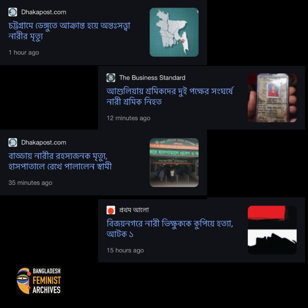 Over the past 24 hours, Bangladeshi news portals have reported numerous incidents happening to Bangladeshi women, highlighting the disturbing reality that continues to plague our society.