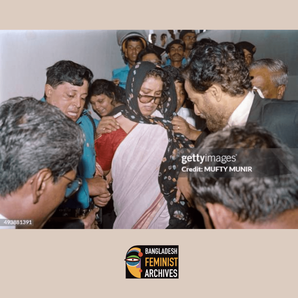 Taslima Nasrin, a renowned Bangladeshi feminist writer, doctor, and women’s rights activist, was photographed outside Dhaka’s High Court on August 3, 1994, discussing her case with her chief lawyer, Amirul Islam, after being granted immediate bail. Just seven days later, on August 10, 1994, Nasrin fled Bangladesh for Sweden to escape prosecution and death threats from fundamentalist groups.