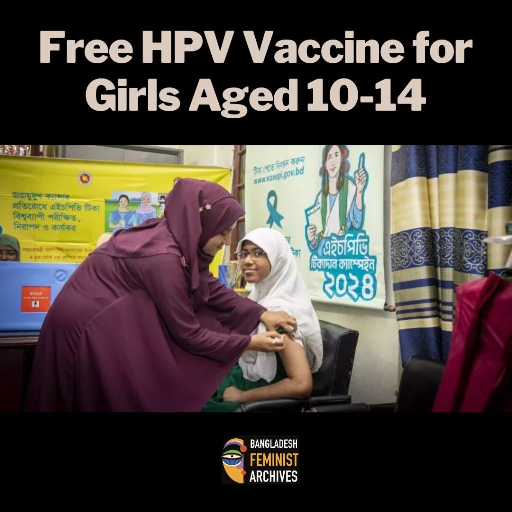 Cervical cancer is a leading cause of cancer-related deaths among Bangladeshi women. This vaccine, available free of cost thanks to the Ministry of Health, Gavi, UNICEF, and WHO, will prevent cervical cancer and ensure a healthier future for our daughters.