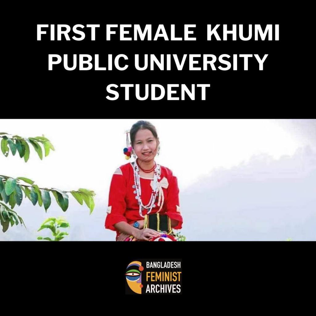 Tongsoi Khumi, from Bandarban’s Mongyo Para, is the first Khumi female student enrolled in a public university (Shahjalal University of Science and Technology).
