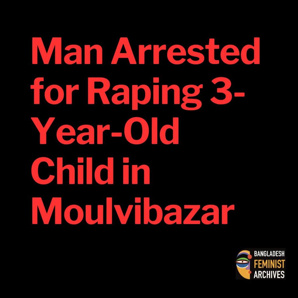 A man, Redwan Islam Arif, has been arrested for allegedly raping a 3-year-old child in Baralekha upazila of Moulvibazar.