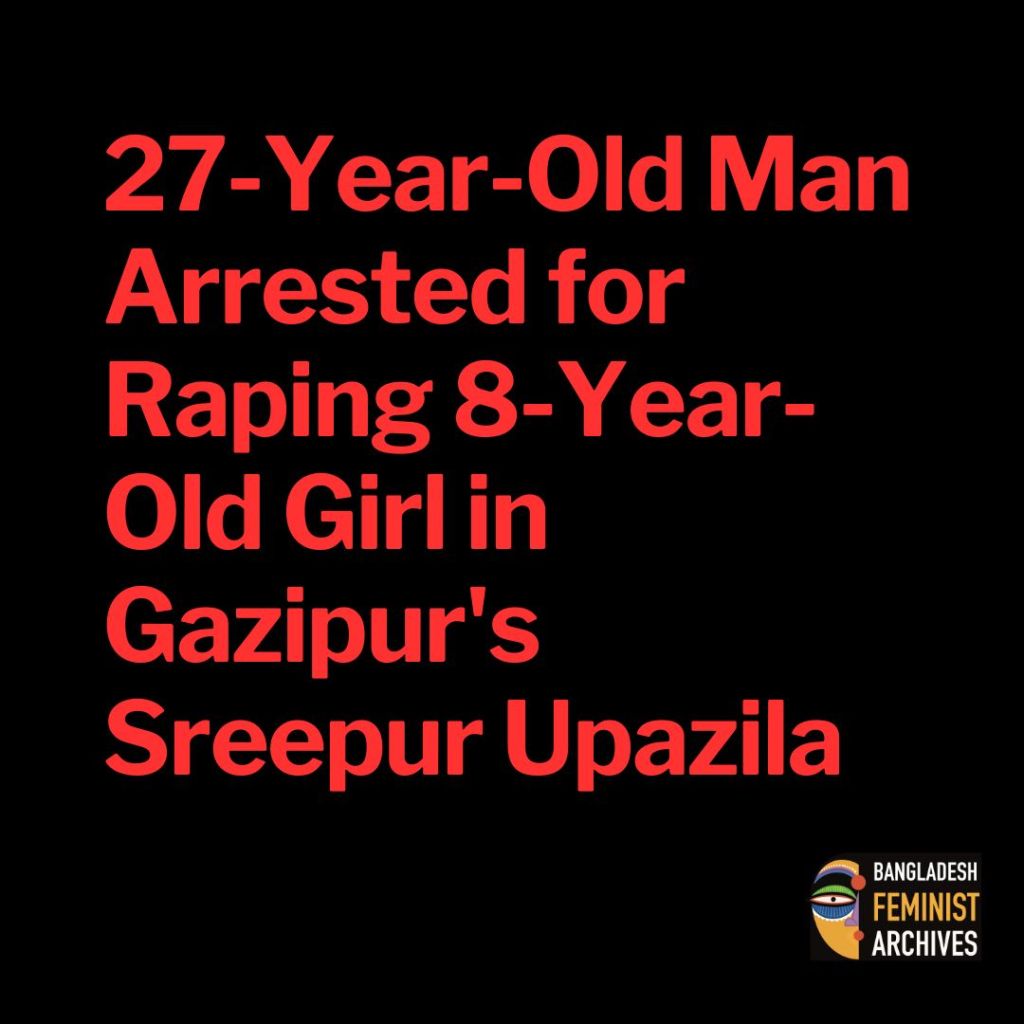 On Saturday, March 8, 2025, a 27-year-old man, Md. Arman Mia, allegedly raped an 8-year-old third-grade girl in Gazipur’s Sreepur Upazila and recorded the scene on his smartphone.