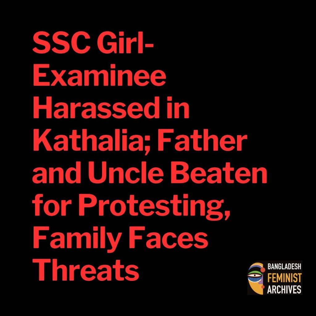 An SSC girl-examinee in Kathalia, Jhalokathi, was harassed, and when her father and uncle protested, they were brutally beaten by the accused. The attack occurred on Monday at around 12:15 PM in the Jorkhali area of Patikhalghata Union.