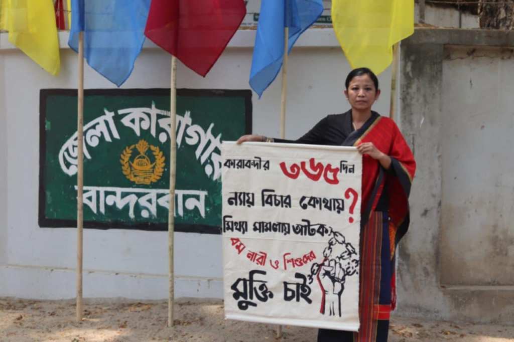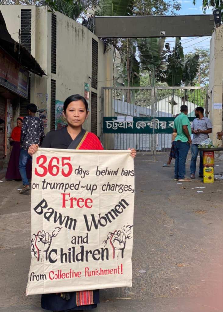 A year later, 23 Bawm women aged between 17 and 50 remain imprisoned in Bandarban and Chattogram jails. They are being held under charges filed through the Special Powers Act, the Anti-Terrorism Act, and multiple sections of the Penal Code. At least 17 of the women have been charged in four separate cases each. In addition, four children, ranging in age from one and a half months to four years at the time of arrest, have been growing up in jail alongside their mothers.