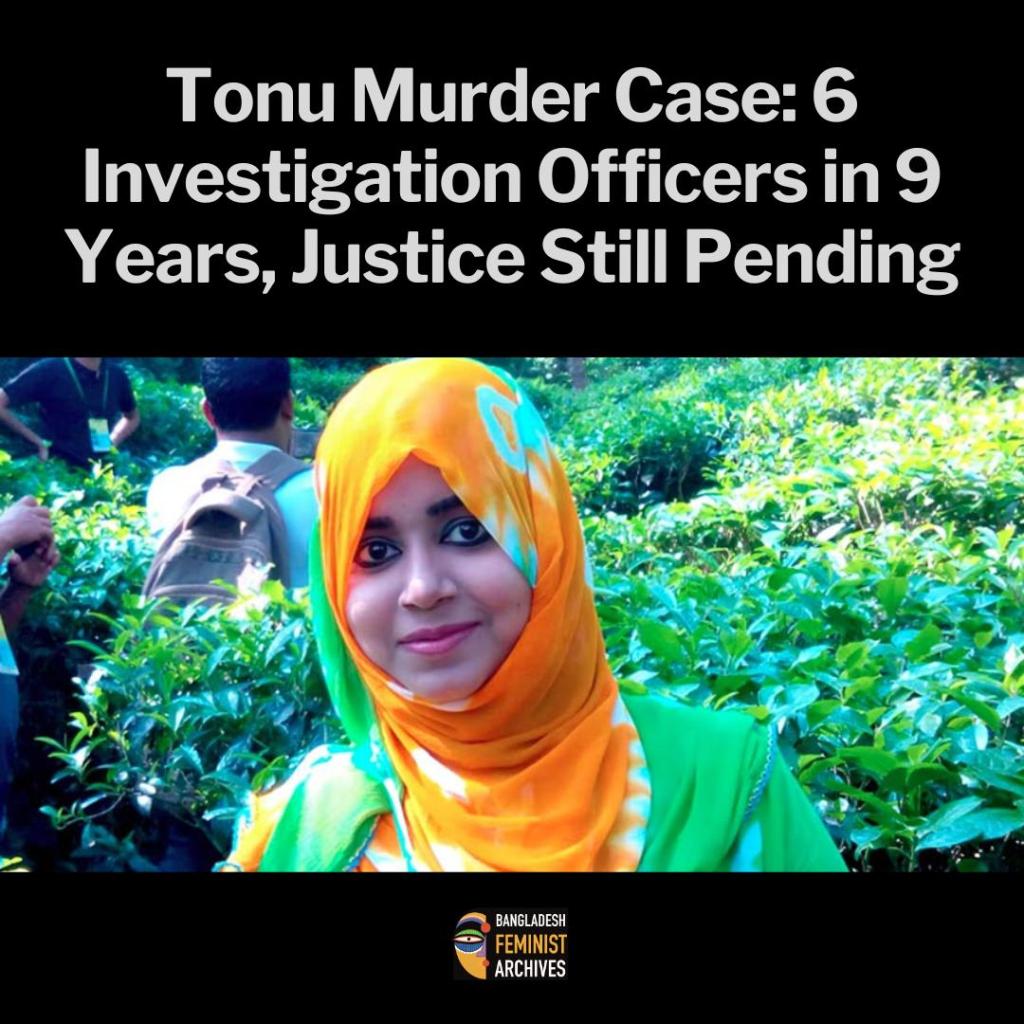 Sohagi Jahan Tonu, a 19-year-old student and theater activist, was found dead in a bush near the power house of the Comilla Cantonment on March 20, 2016.