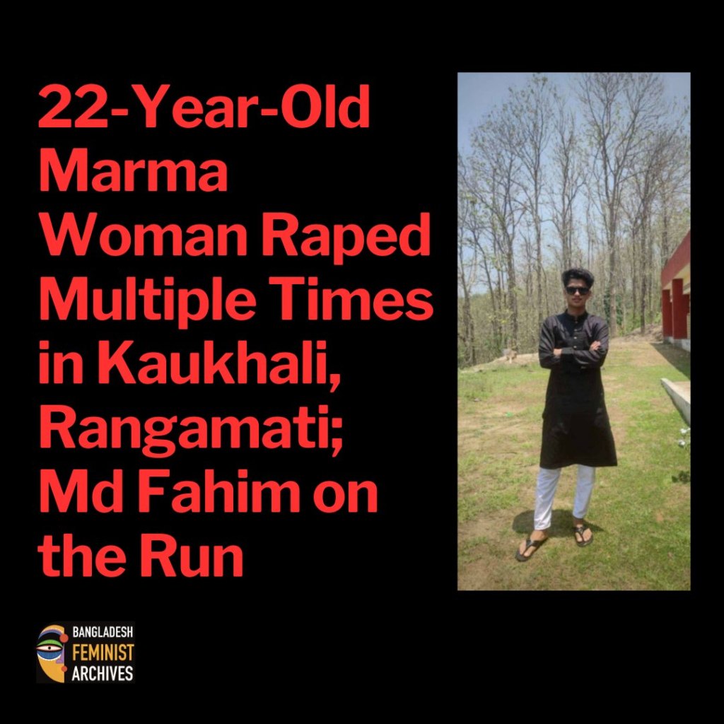 A 22-year-old Marma woman has come forward with allegations of being repeatedly raped by 25-year-old Md. Fahim in Kaukhali, Rangamati, between March 25 and April 3′; 2025.