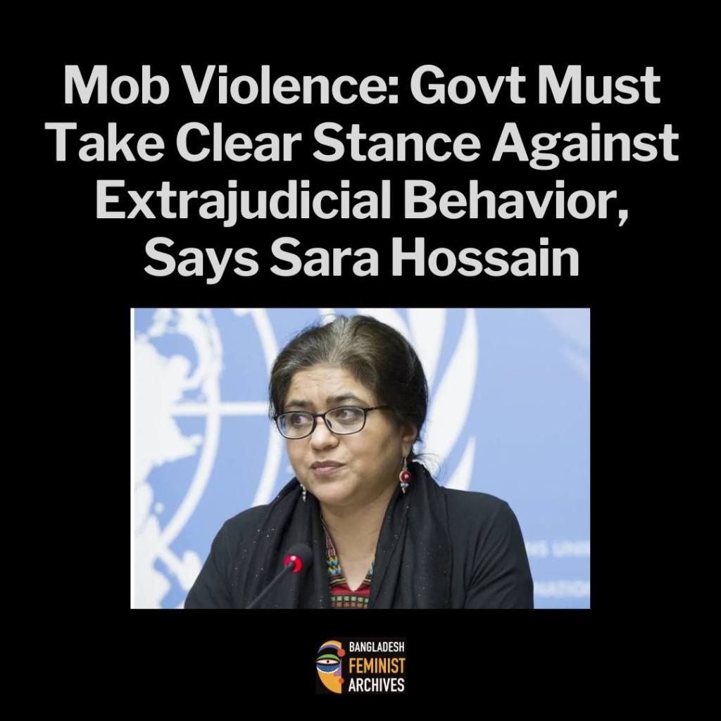 Sara Hossain, a senior lawyer and human rights activist, has expressed concerns about ongoing incidents of mob violence in an opinion piece published in Prothom Alo. According to Hossain, these incidents are targeting various groups, including powerless people, women, and political opponents, and it is worrying. She emphasizes the need for the government to take a clear stance against such violence and for law enforcement agencies to be held accountable.