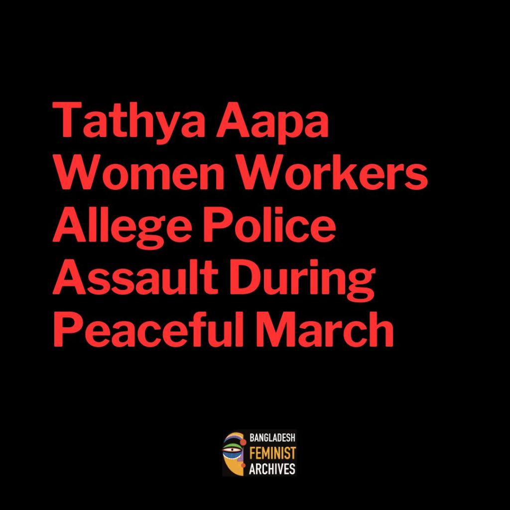 The Tathya Aapa project is run by the Jatiya Mohila Sangstha under the Ministry of Women and Children’s Affairs. Many of its workers have been appealing for job security as their contracts near expiration. The violent repression of their demands has sparked widespread concern over state violence and gendered police brutality.