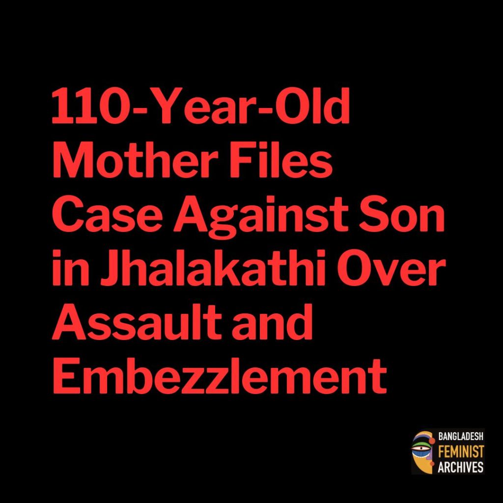 Amirul Nesa, a 110-year-old woman from Jhalakathi, has filed a case against her son, Yunus Molla (55), accusing him of assaulting her and embezzling money she had entrusted to him. The incident reportedly occurred when Nesa asked Yunus for three lakh taka, money from a land sale she had deposited with him for medical treatment. According to the complaint, Yunus responded with violence, kicking her and causing injury.