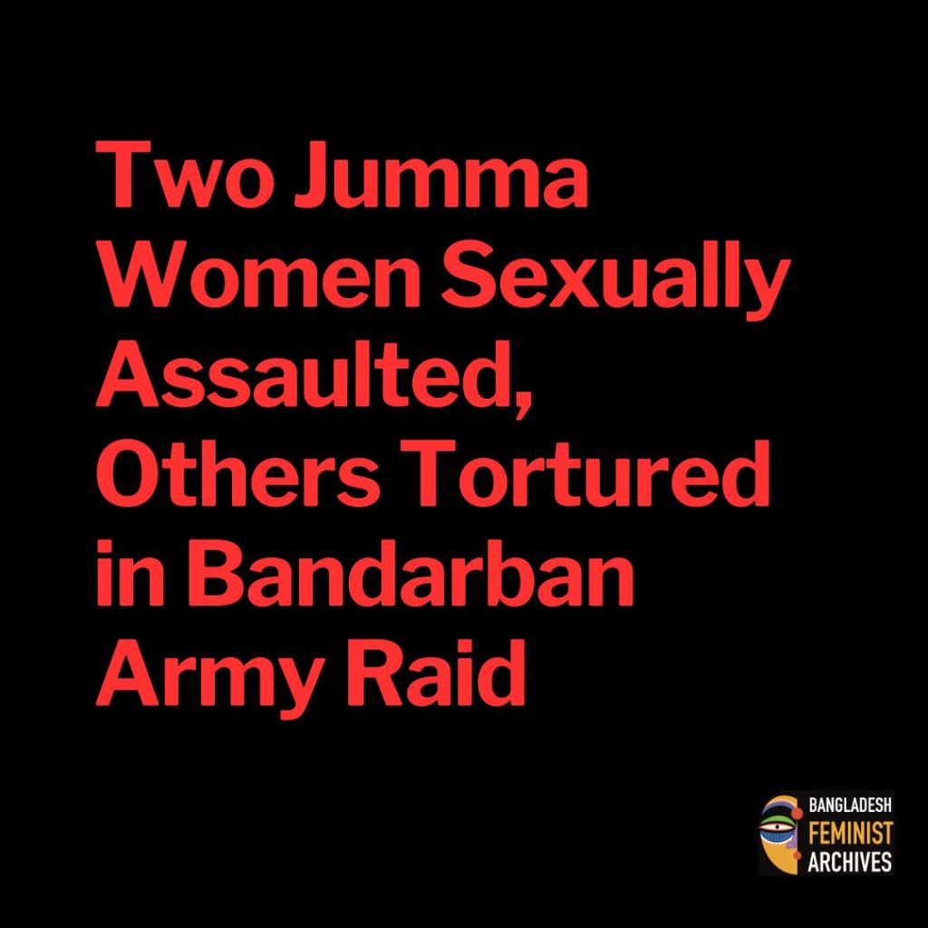 On June 20, 2025, members of the Bangladesh Army reportedly sexually assaulted two indigenous Tripura women during a raid in Muktajan Tripura Para, a village in Tongkabati Union of Bandarban Sadar. The raid was led by Major Md. Manjur Morshed, Deputy Commander of Alikadam Army Zone. According to local sources, the two women, aged 32 and 38, were groped and assaulted inside their homes around 4 a.m.