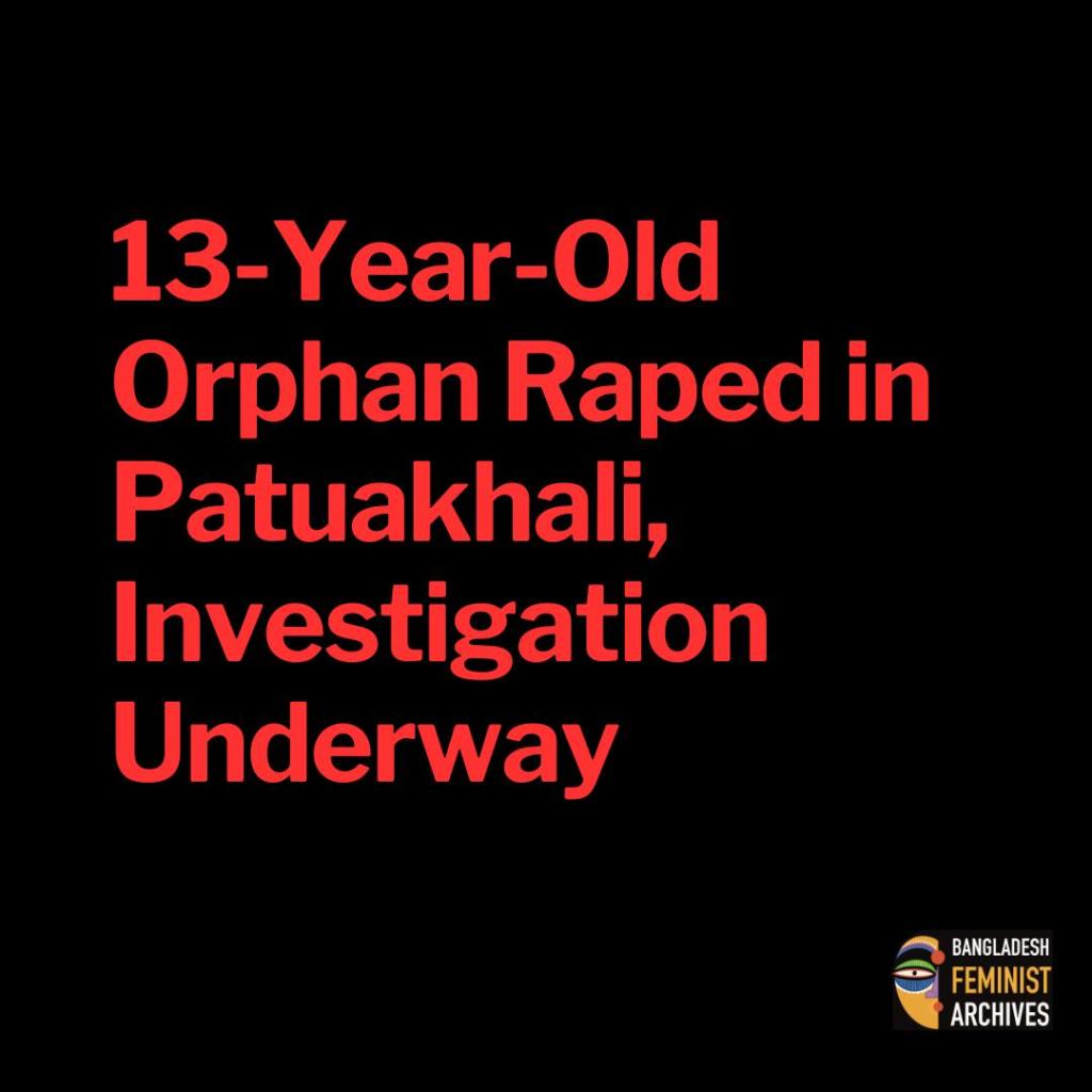 A case has been filed in Patuakhali regarding the rape of a 13-year-old orphan.
