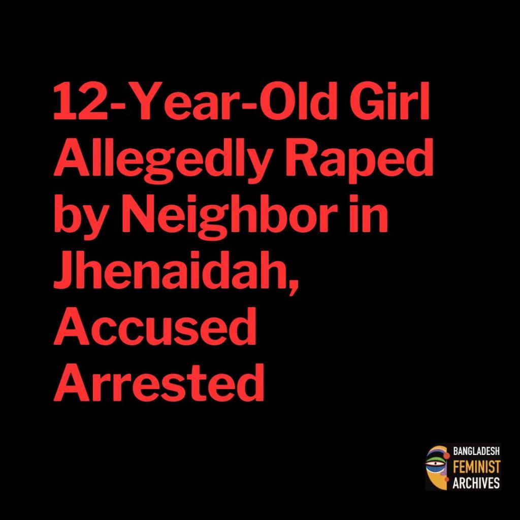 A 12-year-old girl was allegedly raped by Tanvir Hossain alias Sohel Mondal, 31, in Jhenaidah Sadar Upazila. The incident occurred on Sunday afternoon when the girl visited her neighbor’s house. According to the victim’s mother, Sohel called the girl to his house, asking her to hold his baby, and then allegedly raped her.