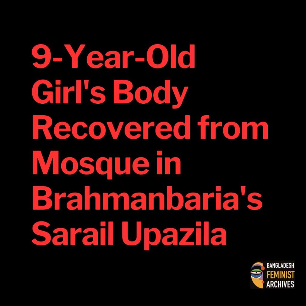 A 9-year-old girl’s body was recovered from the second floor of a mosque in Sarail upazila of Brahmanbaria on Sunday morning. According to police, the child had been missing since Saturday, and her body was found with injuries suggesting possible homicide. The mosque’s muezzin has been brought in for questioning, and a joint investigation is underway by the local police station and the Police Bureau of Investigation (PBI). The body has been sent to Brahmanbaria General Hospital morgue for autopsy.