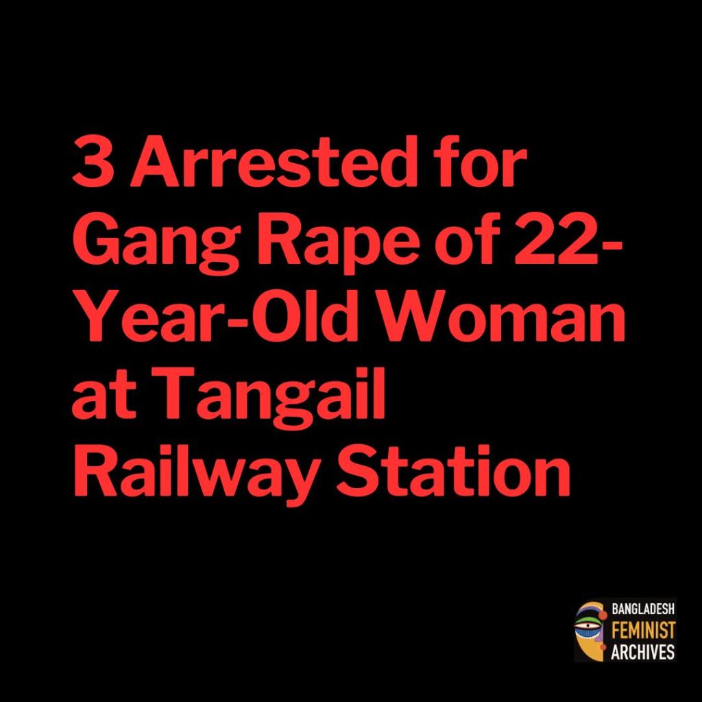Three men, Dulal Chandra Das, Sajib Khan, and Rupu Mia, were arrested for allegedly raping a young woman at Tangail Railway Station.