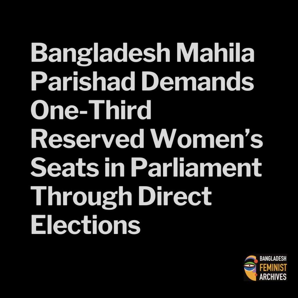 Bangladesh Mahila Parishad has called for a significant overhaul of the current system of reserved seats for women in the National Parliament, demanding that at least one-third of parliamentary seats be reserved for women and filled through direct elections. The demand was made in a statement issued on Wednesday, signed by Mahila Parishad President Fawzia Moslem and General Secretary Maleka Banu.