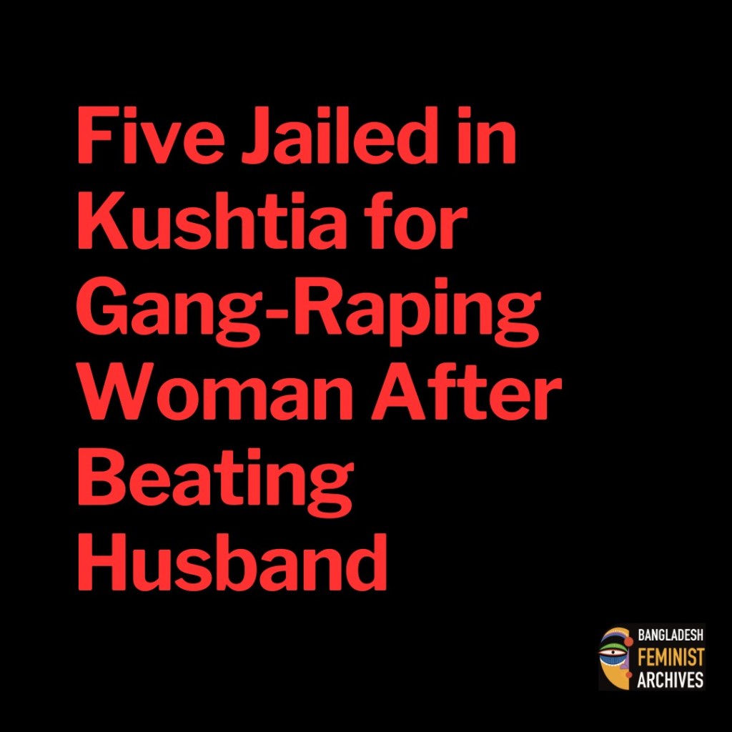 In Kushtia’s Bheramara upazila, five men have been arrested and sent to jail on charges of gang-raping a woman after restraining and beating her husband late Saturday night.