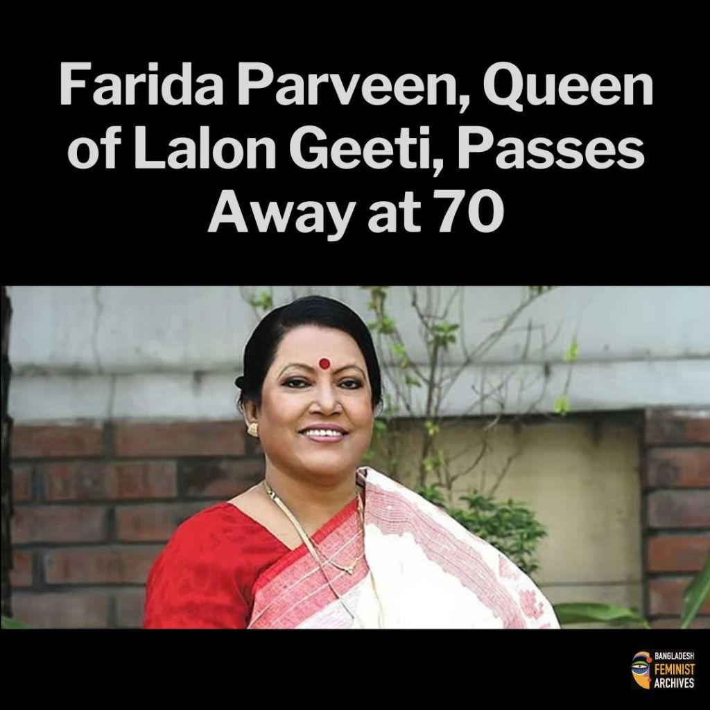 Eminent folk singer Farida Parveen, revered as the “Queen of Lalon Geeti,” passed away in Dhaka on Saturday night. She was 70.