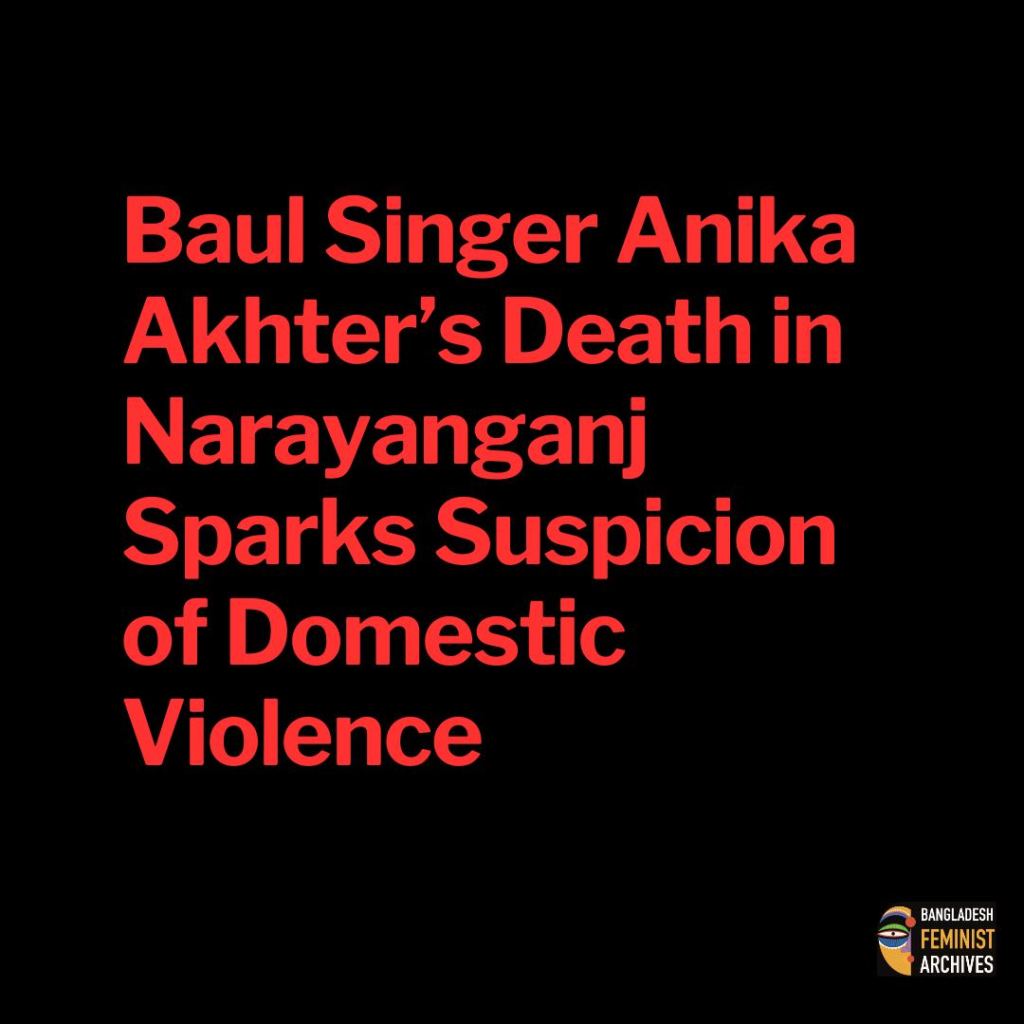 Baul singer Anika Akhter Anika (25) was found dead under mysterious circumstances early Friday morning at her rented home in Bhuigarh, Fatulla, Narayanganj. Her husband, Habibur Rahman, took her body to a local private hospital, where doctors declared her dead. Police later detained Habibur and sent the body to the hospital morgue for autopsy.