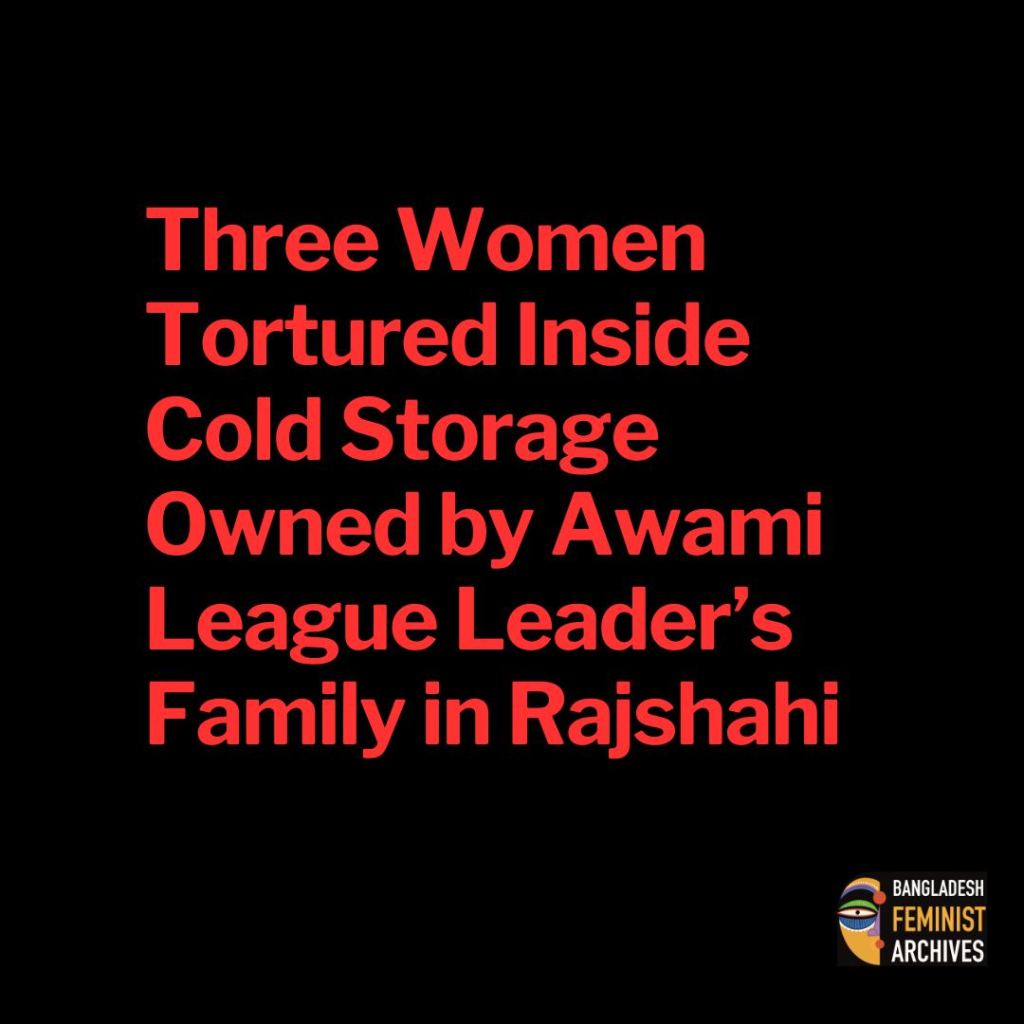 In Rajshahi’s Baya Bazar area, three women—including a medical student, a teenage girl, and an adult woman—were allegedly tortured inside a cold storage owned by former Zilla Parishad Chairman and Awami League leader Mohammad Ali Sarkar. The incident occurred on Tuesday morning and sparked widespread outrage among locals.