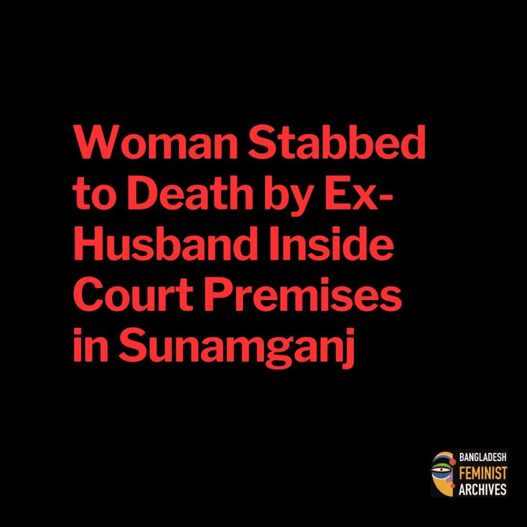 A 28-year-old woman named Sharifa Akhter was fatally stabbed by her ex-husband inside the Dharmapasha Senior Judicial Magistrate Court premises in Sunamganj on Monday morning. The attack took place around 10:30 a.m. while Sharifa was waiting for her lawyer with her three-year-old daughter. She was rushed to Mymensingh Medical College Hospital, where she died later that afternoon.