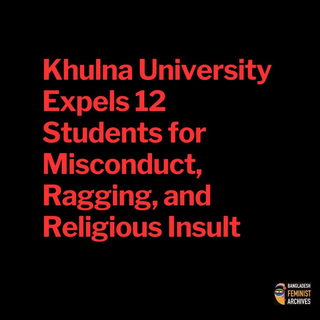 Khulna University has expelled twelve students and disciplined seven others for offenses including ragging, fighting, insulting religion, and drug use. The decision followed an investigation reviewed at the 27th meeting of the university’s disciplinary board on October 9, confirmed by Director of Student Affairs Professor Nazmus Sadat.