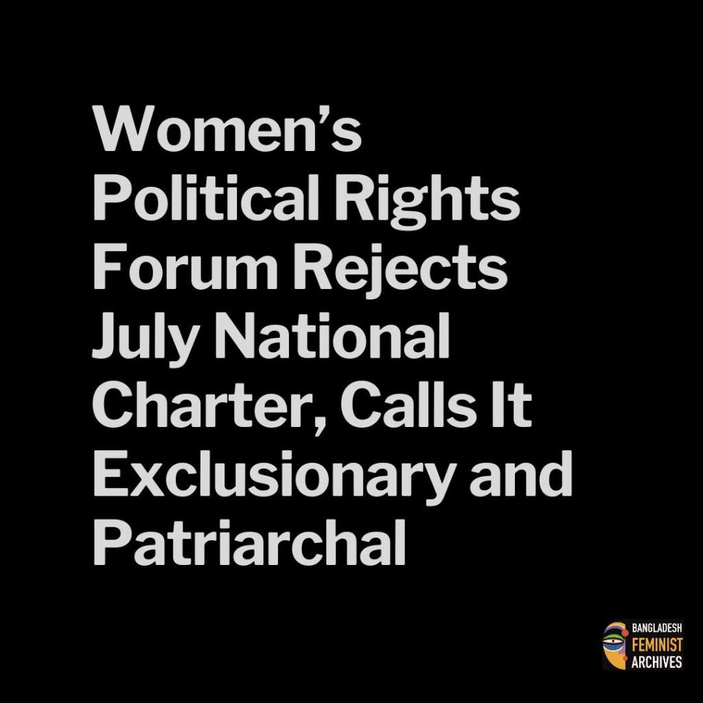 The forum emphasized that this decision is not against any specific institution but reflects a collective policy stance rooted in the demand for women’s political equality. “The July Charter was not for everyone,” the statement said, pointing out that women were excluded from the Consensus Commission and that no efforts were made to incorporate recommendations from the Women’s Affairs Reform Commission or related reform bodies.