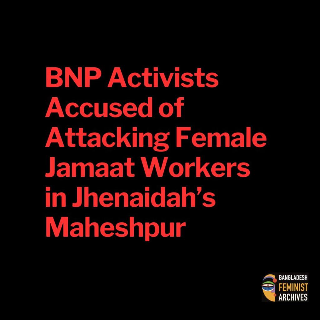 Leaders of Jamaat-e-Islami have alleged that BNP activists attacked several of their female workers in Maheshpur upazila of Jhenaidah, leaving multiple people injured. The Maheshpur Upazila Jamaat held a press conference on Sunday (October 19), demanding immediate arrests and exemplary punishment for those responsible.