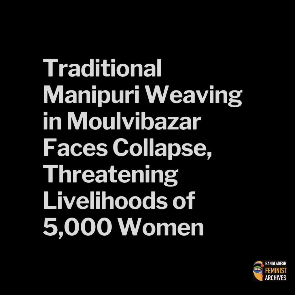 The 200-year-old tradition of Manipuri handloom weaving in Moulvibazar is at serious risk, with weavers reporting that the market for their products has almost disappeared. For generations, Manipuri women have led this cottage industry, producing sarees and textiles that once held national and international reputation — and were recently recognized as a Geographical Indication (GI) product. However, declining demand and market pressure now threaten the livelihoods of at least 5,000 Manipuri women.
