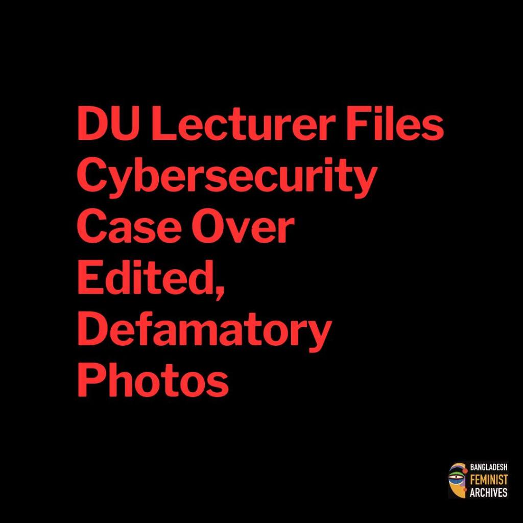 Dhaka University lecturer Shehreen Anim Bhuiyan Monami, of the Department of Public Administration, has filed a case under the Cyber Security Act against four individuals accused of editing and circulating her photograph in a sexually demeaning and defamatory way on social media. The case was filed at Shahbagh Police Station on Monday afternoon. The accused include journalist Mujtaba Khandaker, writer Mohiuddin Mohammad, Dhaka College student Nirab Hossain, and Ashfaq Hossain Ivan.