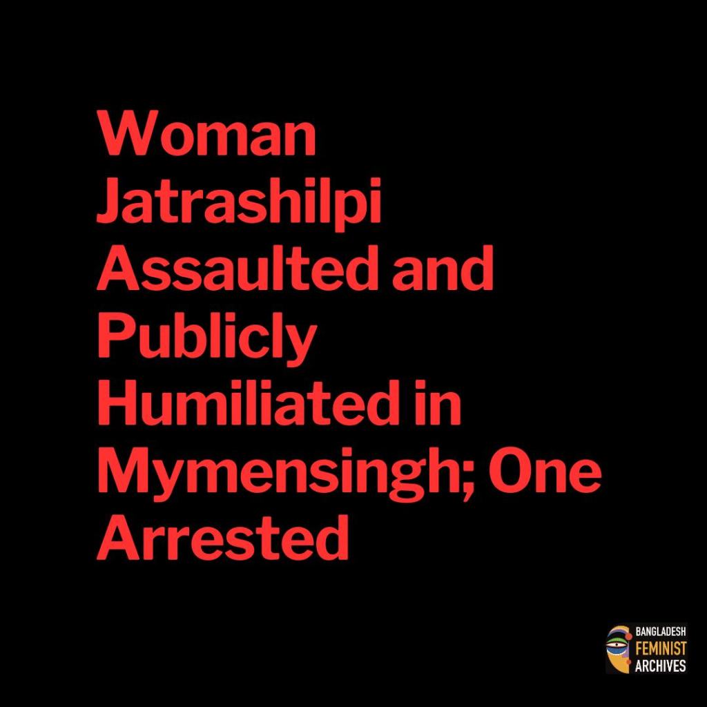 A woman jatrashilpi named Rupa, living in Mymensingh Nagar, was assaulted, tied up, her hair cut, and her face smeared with ink on Wednesday. She later filed a case at the Women Police Station, and police arrested one accused, Shah Alam (40), on Thursday night from the Jubilee Ghat area.