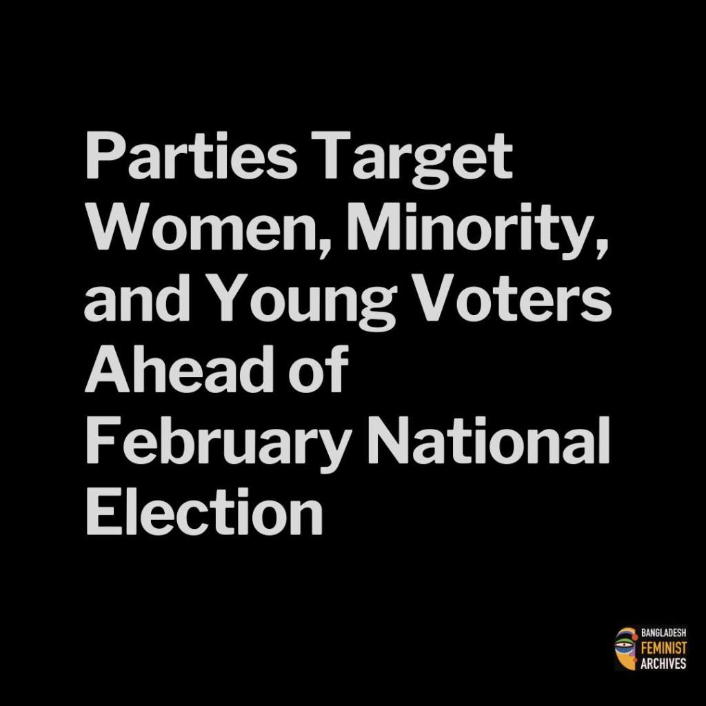 BNP’s Acting Chairperson Tarique Rahman announced five measures for women’s safety. BNP’s Women’s Wing is campaigning with the party’s 31-point program, holding courtyard meetings and door-to-door outreach. On 3 November, BNP announced candidates for 237 seats, including 10 women and 4 non-Muslim candidates. Begum Khaleda Zia will contest Dinajpur-3, Bogura-7, and Feni-1. Other women candidates include: Farzana Sharmin (Natore-1), Sabira Sultana (Jashore-2), Israt Sultana Elen Bhuttu (Jhalokathi-2), Sansila Jebrin (Sherpur-1), Afroza Khan Rita (Manikganj-3), Sanjida Islam Tuli (Dhaka-14), Shama Wabed Islam (Faridpur-2), Tahsina Rushdir (Sylhet-2), and Nayab Yusuf Ahmed (Faridpur-3).