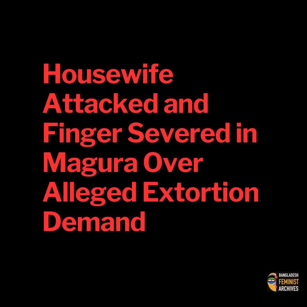 A housewife named Rima Khatun (35) was seriously injured after being hacked by assailants who allegedly demanded extortion money in Uttar Noapara village, Hazrapur Union, Magura Sadar. The incident occurred on Saturday morning. Rima is the wife of expatriate Arif Hossain.