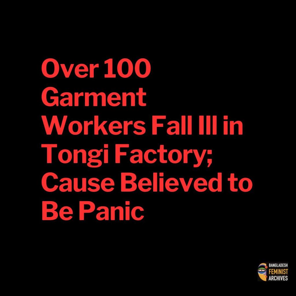 More than one hundred garment workers at a factory in the Mill Gate area of Tongi, Gazipur, suddenly fell ill around 2 pm on Saturday and were admitted to various hospitals. Witnesses said workers began collapsing one after another, with many becoming unconscious and salivating. Most of the affected workers were women, and the incident occurred on the factory’s 5th floor.