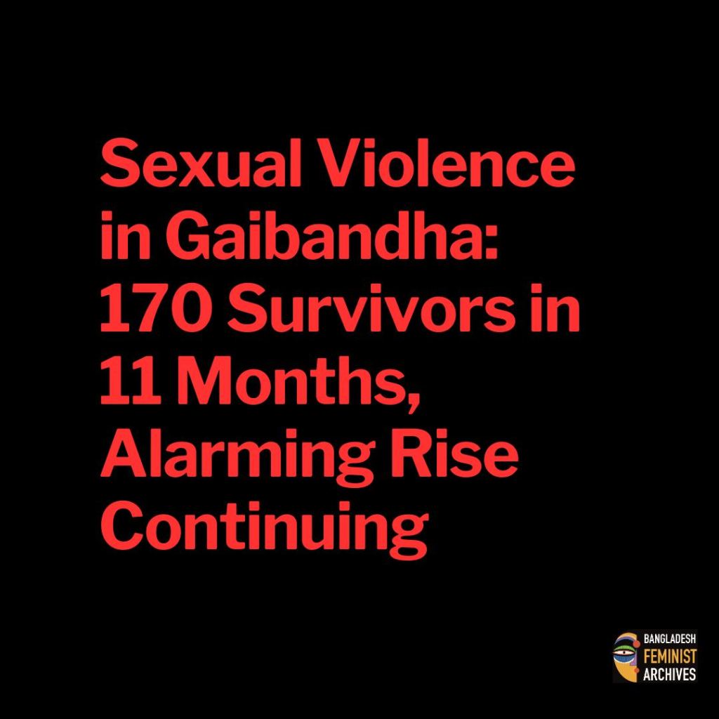 Sexual violence in Gaibandha continues at a disturbing pace. Between January and 5 November 2025, 170 women and children were raped or physically assaulted—already higher than 162 cases in 2024. Government health records show that survivors include children and adolescents aged 5–17, as well as women aged 18 to 70. Families say fear and psychological stress have intensified, as even basic safety for girls and women feels uncertain.