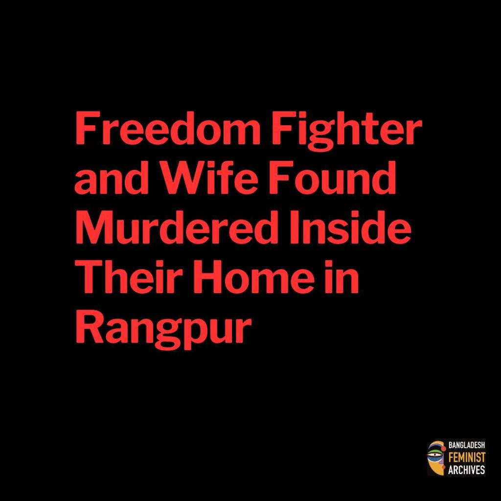 A freedom fighter and his wife were found murdered inside their home in Taraganj Upazila of Rangpur on Sunday morning. Police recovered the bodies of 75-year-old Yogesh Chandra Roy, a former headmaster of Chakla Primary School, and his wife 60-year-old Suborna Roy from their house in Khiarpara village of Kursha Rahimapur Union. Both had their throats slit.