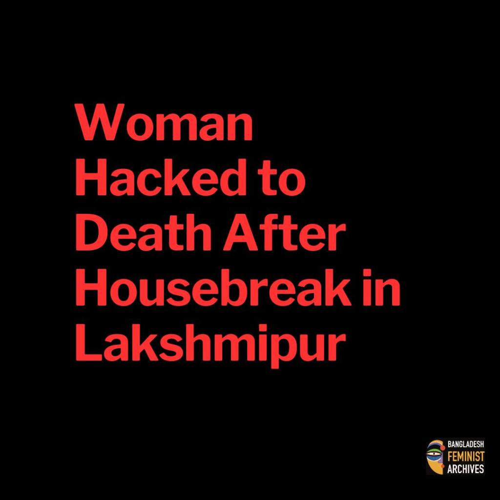 A woman was hacked to death by miscreants after her house was broken into in Lakshmipur early Saturday morning. The incident took place around 3:30 AM in the Matka Mosque area of Ward No. 10 under Lakshmipur municipality. The victim has been identified as Sakina Begum (50).
