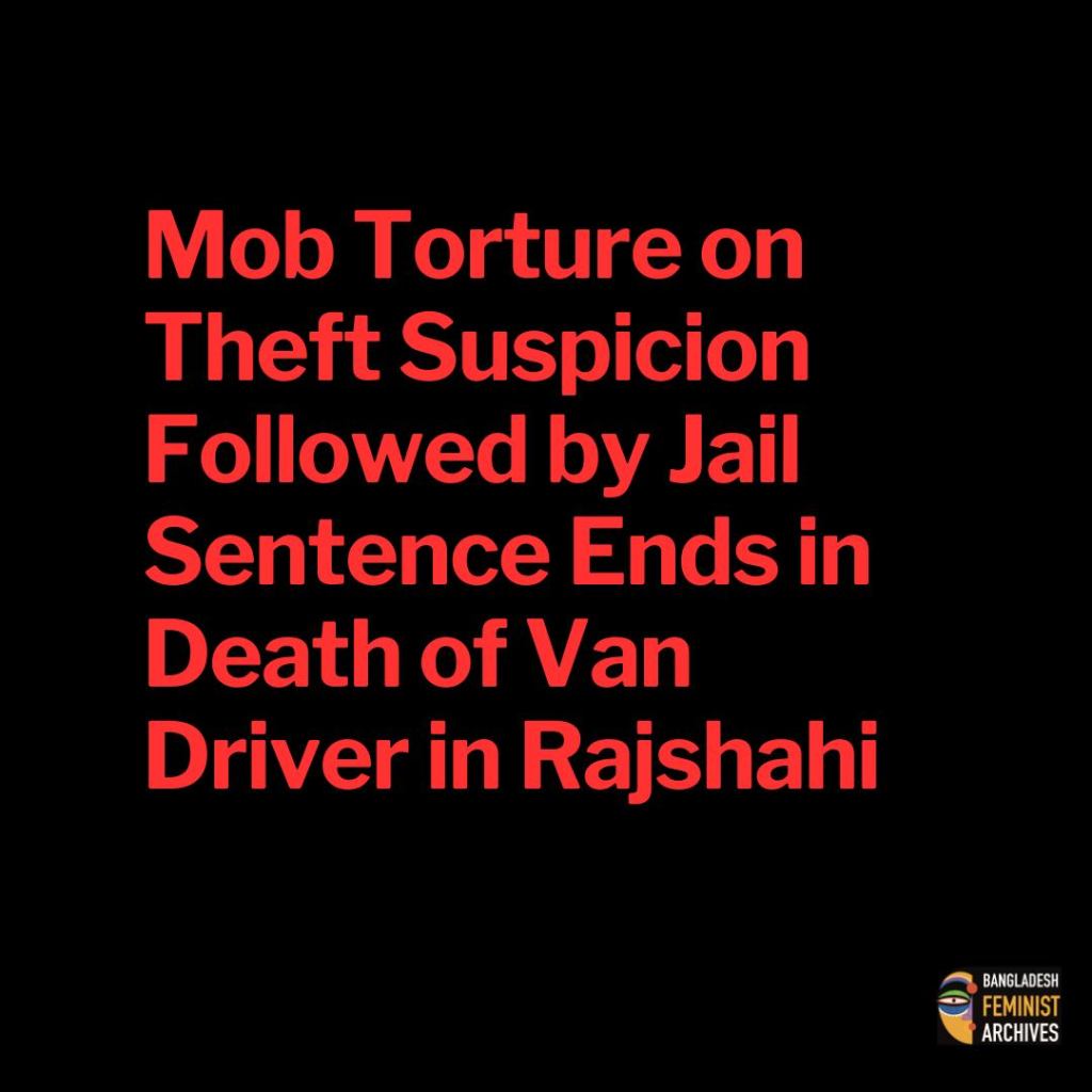 A van driver in Rajshahi died after being subjected to prolonged torture by a mob on suspicion of theft and later sentenced to jail by a mobile court while critically injured, family members and officials said. Omar Faruk (38) died early Saturday morning, December 21, at Rajshahi Medical College Hospital, where he was taken from jail for treatment.