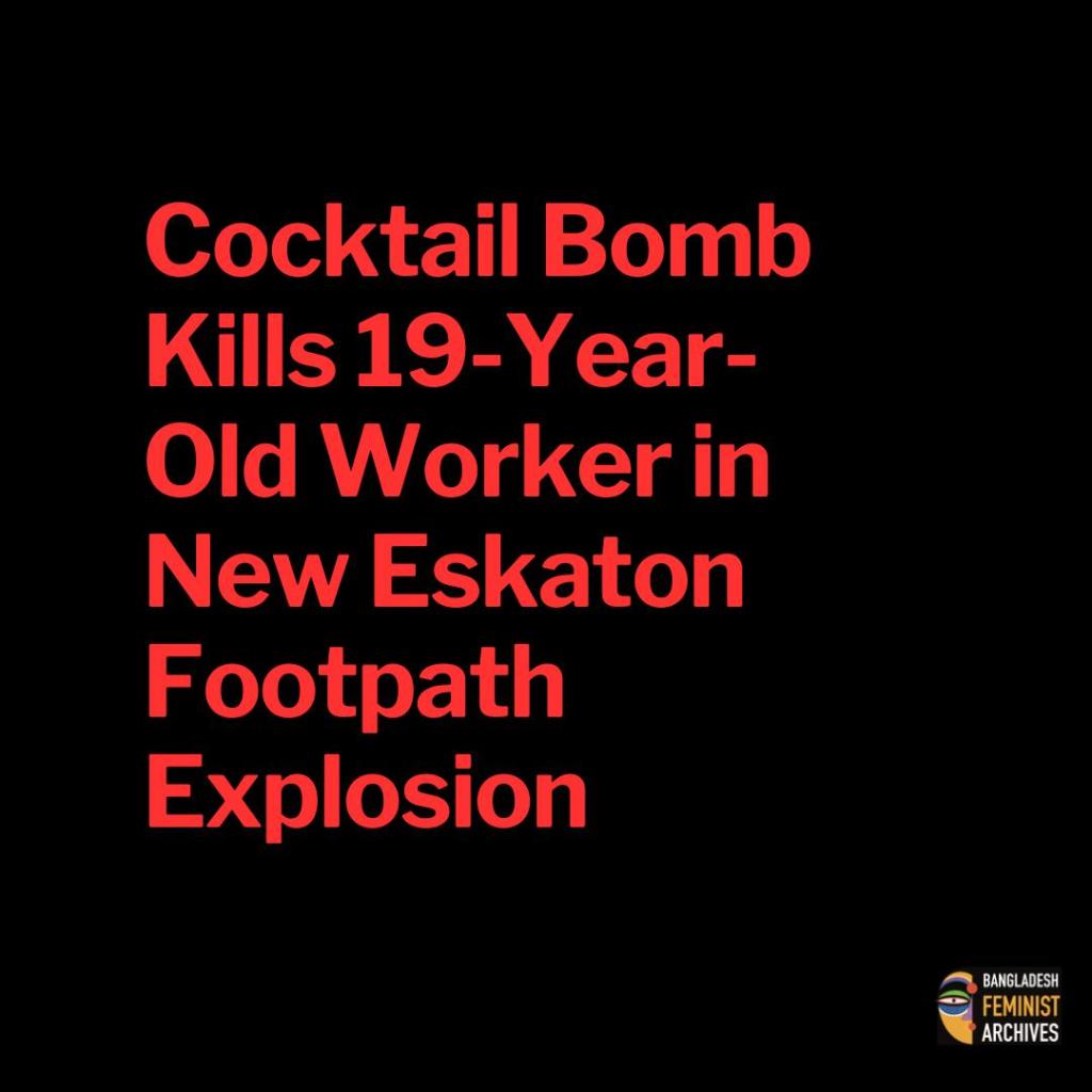 A 19-year-old young man was killed on Wednesday evening after a cocktail bomb exploded on a busy footpath in New Eskaton, Dhaka, raising renewed concerns about public safety in densely populated urban areas. The incident occurred around 7:45 pm in front of the Bangladesh Muktijoddha Central Command Council, near the Moghbazar intersection.