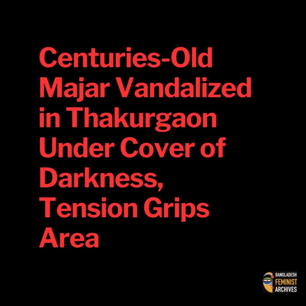 A Majar in Thakurgaon town was vandalized under the cover of darkness, triggering tension in the area. The incident took place sometime on Friday night at the Hazrat Baba Shah Satyapir Majar in the Satyapir Bridge area, said Thakurgaon Sadar Police Station Officer-in-Charge Monir Hossain.