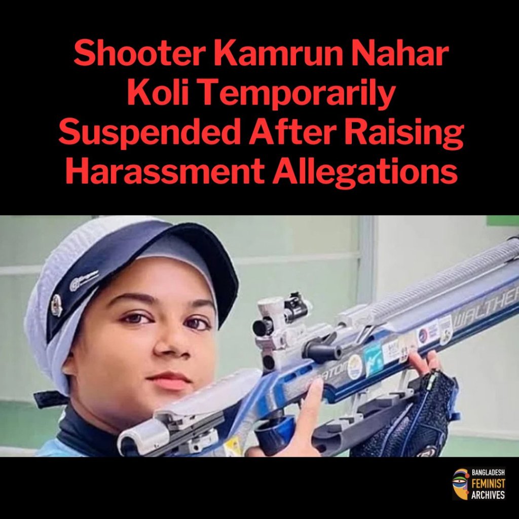The Bangladesh Shooting Sports Federation has temporarily suspended national shooter Kamrun Nahar Koli, days after she publicly raised allegations of sexual harassment and irregularities within the federation.