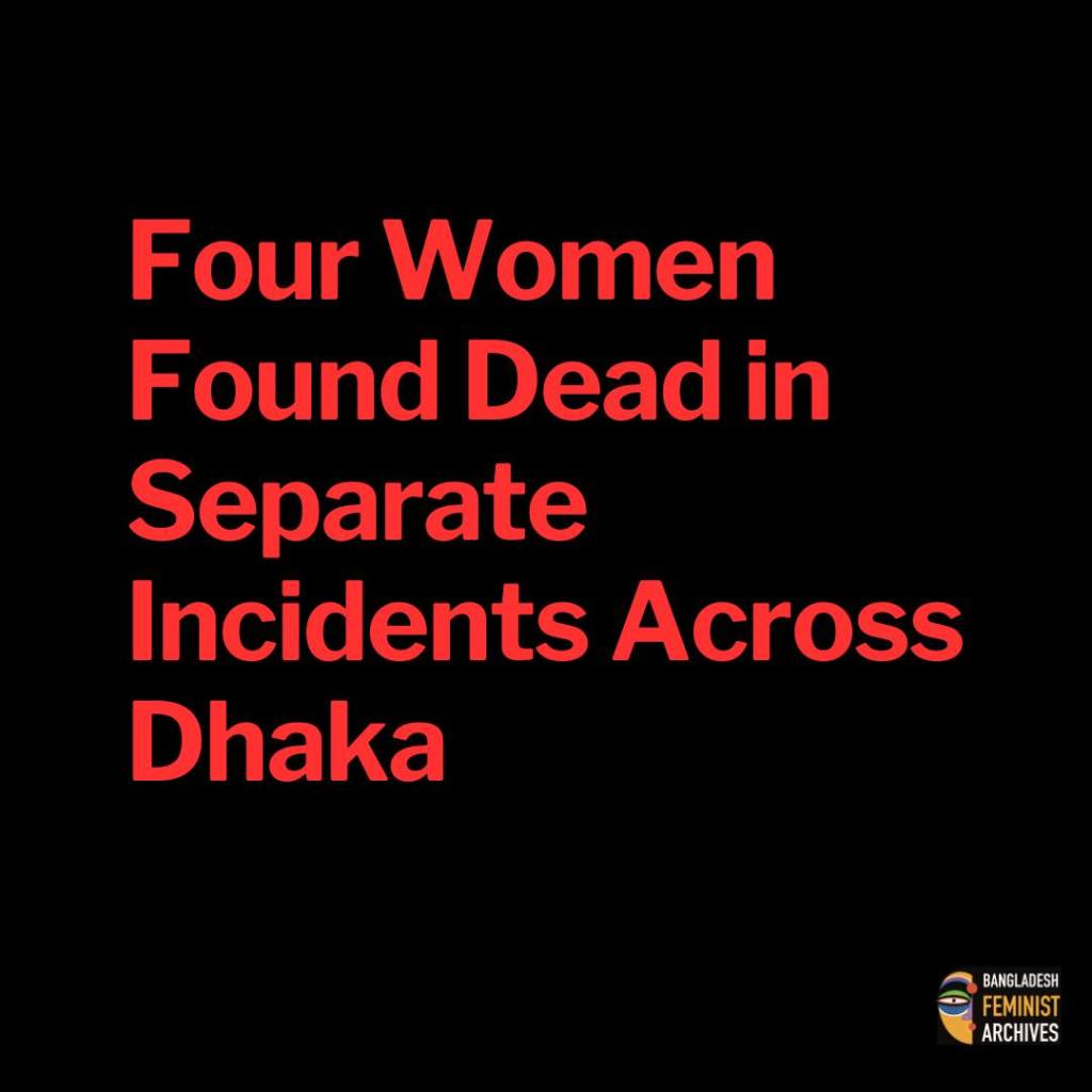 Police recovered the bodies of four women from separate locations in Dhaka between the night of January 16 and the morning of January 17, 2026, according to police sources. The incidents took place in Badda, Mirpur, Demra, and Jatrabari. All four bodies were sent to Dhaka Medical College Hospital for autopsy.