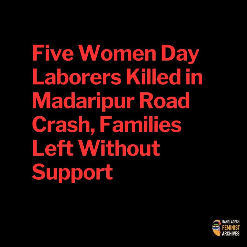 Five women day laborers who regularly traveled across districts for agricultural work were killed in a road accident in Madaripur on Sunday evening, highlighting the extreme vulnerability faced by working-class women in Bangladesh. The women were returning home after a day of wage labor when a passenger bus collided head-on with a battery-operated auto-rickshaw on the Dhaka–Barishal highway in the Milgate area.