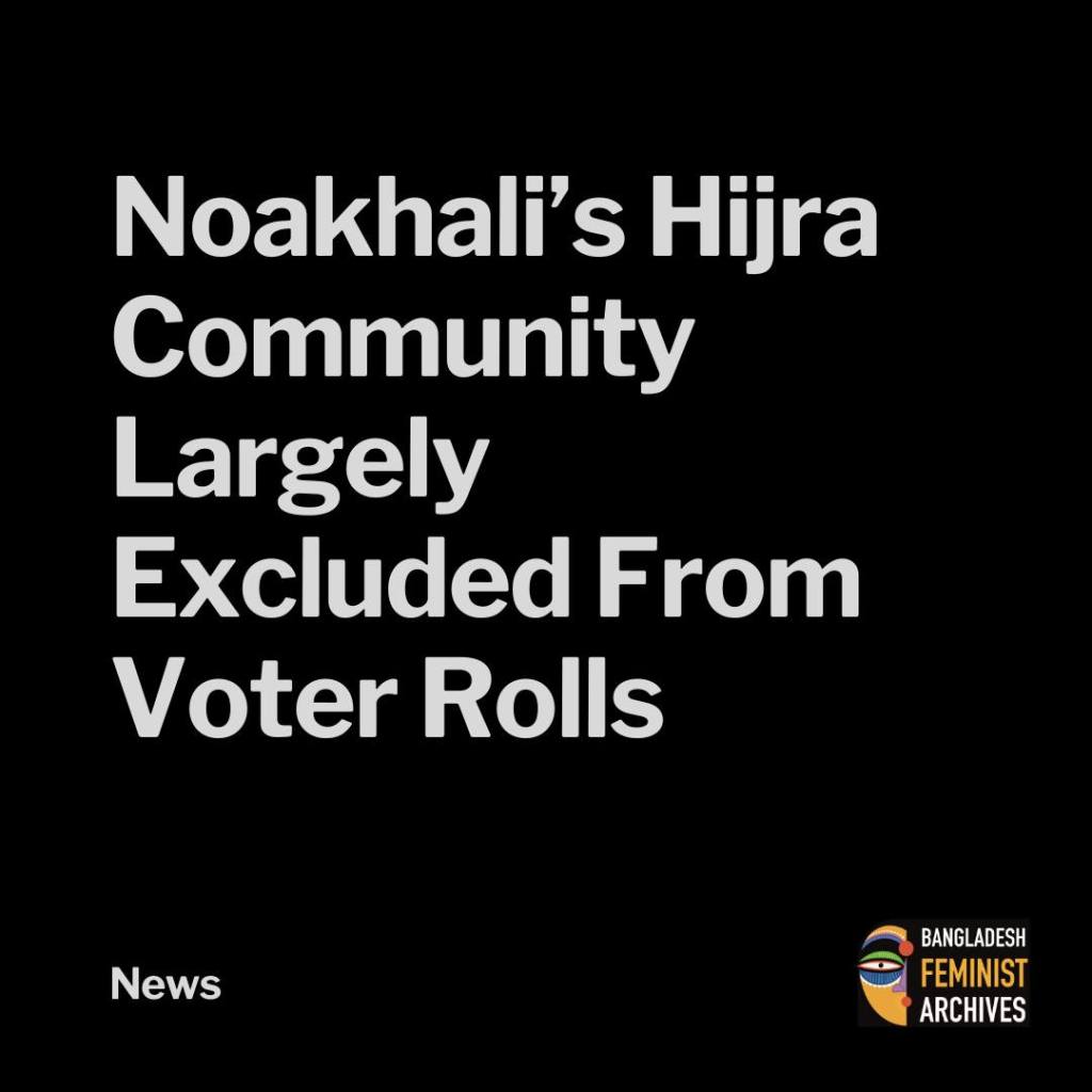In Noakhali district, the vast majority of Hijra people remain excluded from the voter list despite the existence of a separate “third gender” category in Bangladesh’s voter registration system. While more than two thousand Hijra people are estimated to live across the district’s nine upazilas, official records show that only 14 individuals are registered as voters under the third-gender category.