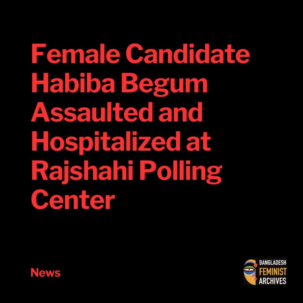 Independent candidate Habiba Begum, the only female contender in Rajshahi-3 (Paba–Mohanpur), was reportedly assaulted during voting on February 12 and later hospitalized, according to her election team. A written complaint has been submitted to the Returning Officer and Deputy Commissioner after police allegedly declined to register the case.