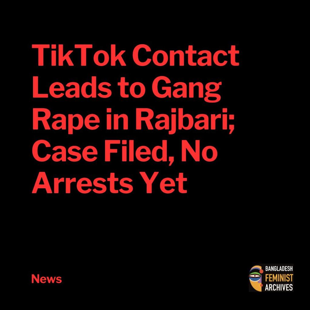 A 22-year-old woman was gang-raped in Pangsha Upazila of Rajbari after traveling to meet a man she had met on TikTok, according to police and local sources. The incident occurred Friday night at a government shelter facility in Sarisha Union.