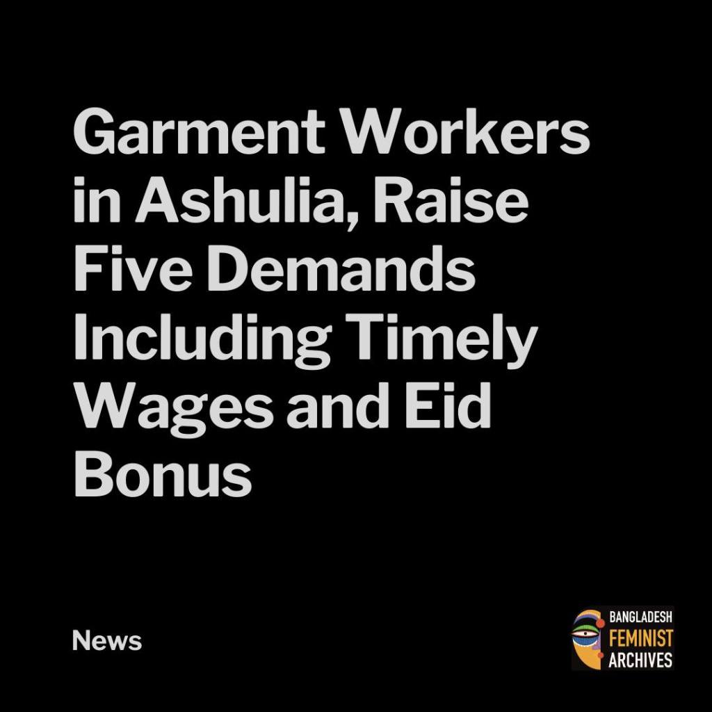 Garment workers and labor organizers gathered in Ashulia, Savar, on Friday morning to raise five key demands, including timely payment of wages and Eid bonuses. The program was organized by Bangladesh Garment Workers’ Solidarity in front of Hashem Plaza in the Dhaka Export Processing Zone (DEPZ) area ahead of International Women’s Day.