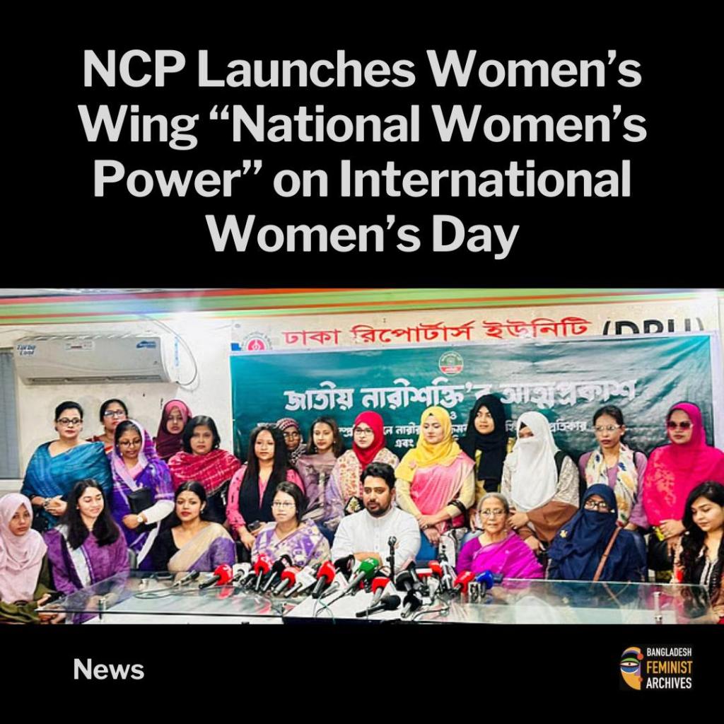 The National Citizen Party (NCP) has launched its women’s wing, National Women’s Power, on the occasion of International Women’s Day. The announcement was made on Sunday afternoon at a program held at Dhaka Reporters Unity (DRU) in the capital.