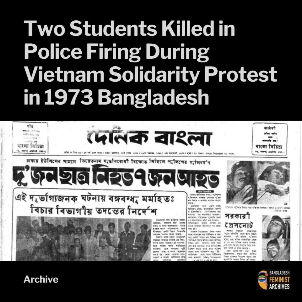 On January 1, 1973, independent Bangladesh witnessed its first recorded instance of police opening fire on a student protest, resulting in the deaths of two young protesters—Matiul Islam (21) and Mirza Kaderul Islam (17). The protest was part of a broader demonstration against United States military aggression in Vietnam.